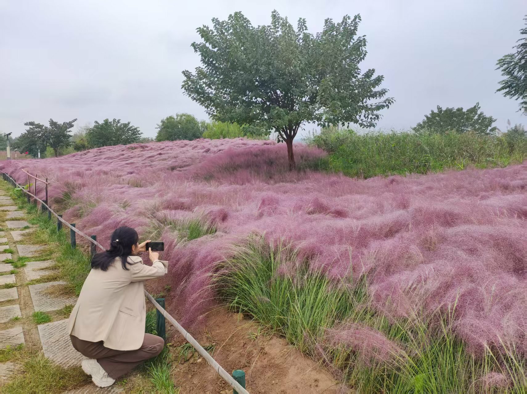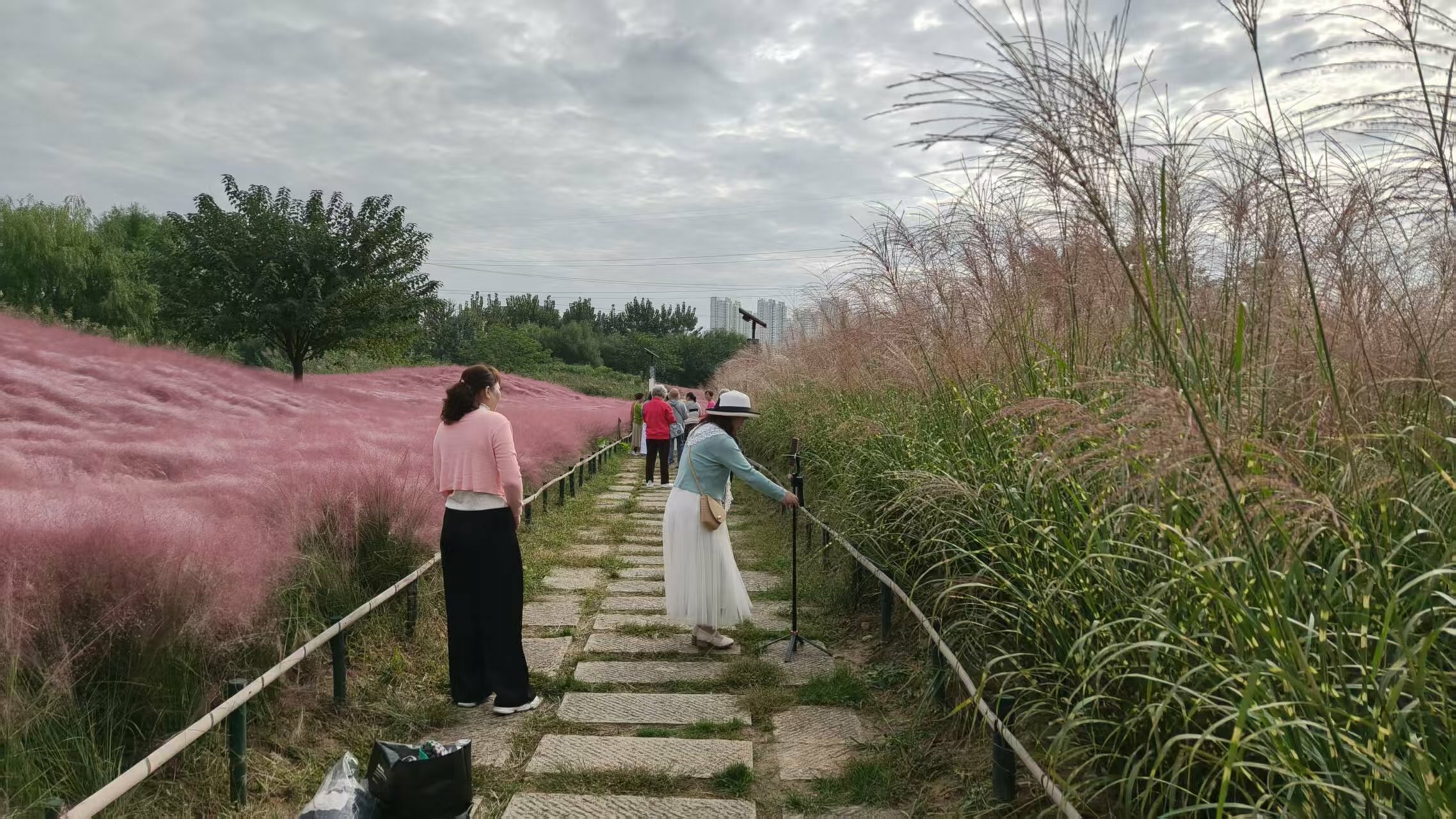 走进公园,连片粉紫色花穗随风摇曳,花浪层层起伏,宛如铺展于大地的“粉色梦境”,无需刻意构图,随手一拍便是氛围感十足的秋日大片。