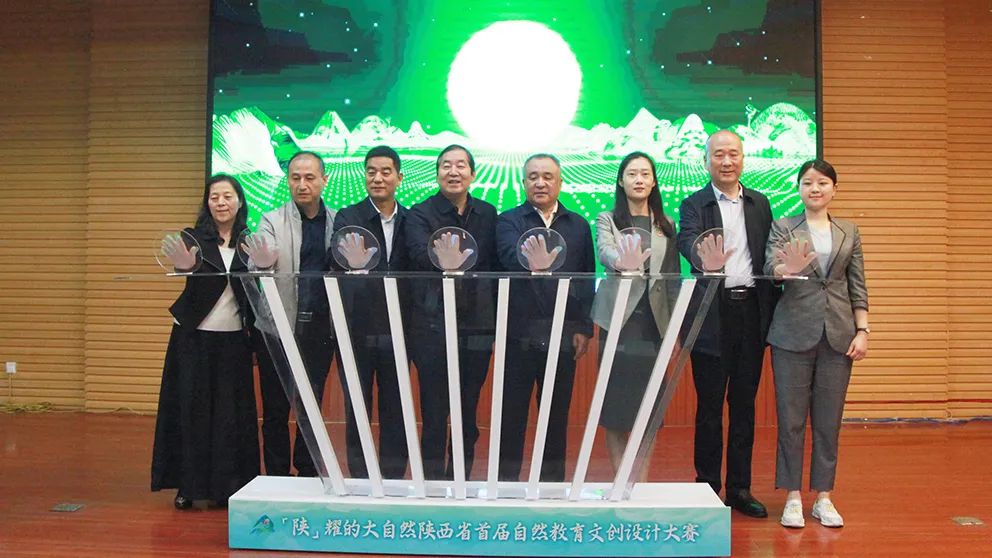 省政协人口资源环境委员会副主任(专职)张岩,省林业局党组成员、副局长刘保华,共青团陕西省委副书记陈博,宝鸡市林业局党组书记、局长陈天仓,省教育厅基教一处二级调研员康林昌,省农林水利气象工会副主席魏效燕,省妇女联合会宣传部副部长靳倩倩,陕西省自然教育专家党银侠共同启陕西省首届自然教育文创设计大赛。