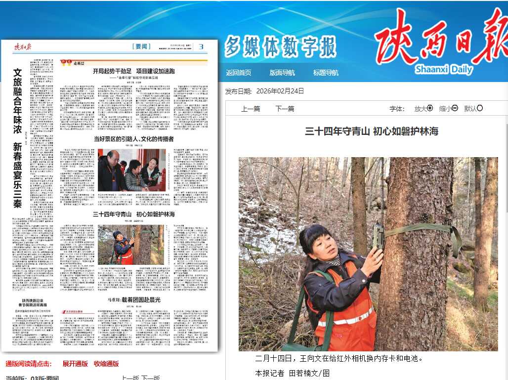 立春已过,秦岭深处的寒意仍未消散。记者来到宝鸡市辛家山林业局辛家坪林场,目之所及,积雪覆山,松枝凝霜,林间尚未染上春日新绿。这片静谧林海,是15名护林员日夜守护的家园。50多岁的王向文,便是其中一员。34载春秋,她把青春献给山林,用坚守与热爱点亮秦岭深处的绿色希望。