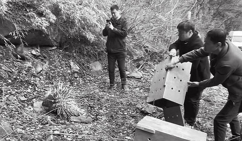 3月13日,随着渭滨区林政管理所工作人员在神沙河自然保护区附近打开救助笼(见下图),两头豪猪回归到秦岭的怀抱中。